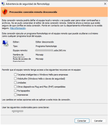 Recientemente puede aparecer una advertencia al intentar establecer la conexión remota.